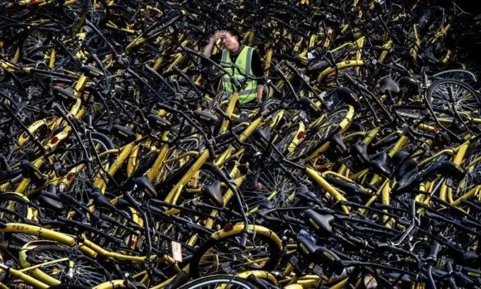 В Китае обанкротился крупнейший оператор проката велосипедов Bluegogo. Теперь все велосипеды постепенно свозят в одно место. Гора из двухколесных механизмов уже достигла размеров футбольного поля и продолжает расти с каждым днем. К слову, только в одном Шанхае, по официальным данным, на общественных парковках горожан и туристов ожидают 1,5 миллиона прокатных велосипедов.