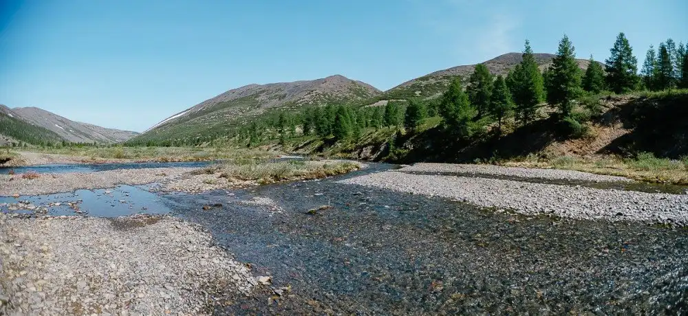 Равнинные пейзажи заканчиваются, и мы попадаем в горную страну Верхоянского хребта