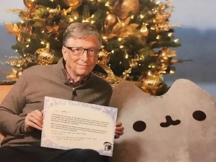 Сооснователь Microsoft Билл Гейтс в очередной раз принял участие в игре «тайный Санта», участники которой анонимно присылают друг другу подарки на Рождество. В этом году миллиардер подарил подарки девушке, известной в сети под ником VivetteLLC. Главным подарком стал большой плюшевый кот весом 13 кг. Кот Пушин является персонажем книг и стикеров на Фейсбуке. Девушке также достались книги, японская кукла Дарума, снежный шар с игрушечным котенком внутри, футболка любимой рок-группы, сувениры по мотивам ее любимого сериала «Доктор Кто», свиток с картой Скайрима из игры The Elder Scrolls V: Skyrim, сертификат на благотворительность от ее имени на 750 долларов и сертификат на сумму 150 долларов в магазин одежды. Кроме того Гейтс вложил фотографию, подтверждающую, что подарок от него.