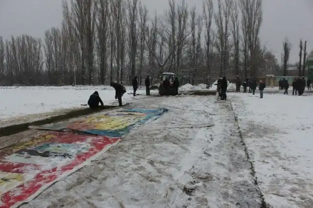 В Саратове новый газон постелили на заснеженный стадион «Авангард»