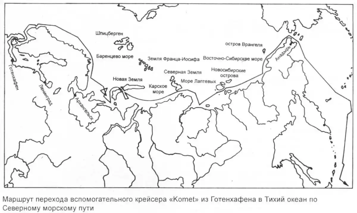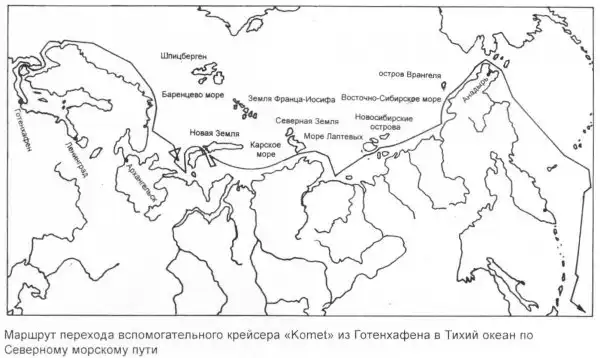 С учетом того, что к лету 1940 года советско-германские отношения были очень дружественными, для избежания риска прорыва через блокаду союзников было решено провести "Комет" в Тихий океан по Северному морскому пути. Просьба германского военно-морского атташе в Москве была согласована со Сталиным, который утвердил коммерческую сделку размером 970 тыс. марок и отдал распоряжение начальнику Главсевморпути И. Д. Папанину включить проводку германского "вспомогательного судна с военным экипажем" в план навигации 1940 года. К слову говоря, немцы держали в секрете вооружение судна. Командир "Комета" Эйссен впоследствии писал: «То, что мы имели на борту военную команду, нами не скрывалось. Главное, они (русские) не узнали о нашем сильном вооружении… Только после того, как русские ушли с борта, я начал проводить учения и тревоги, чтобы поднять боевую готовность корабля».