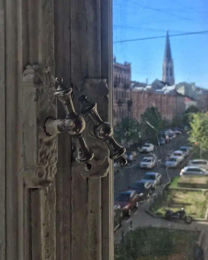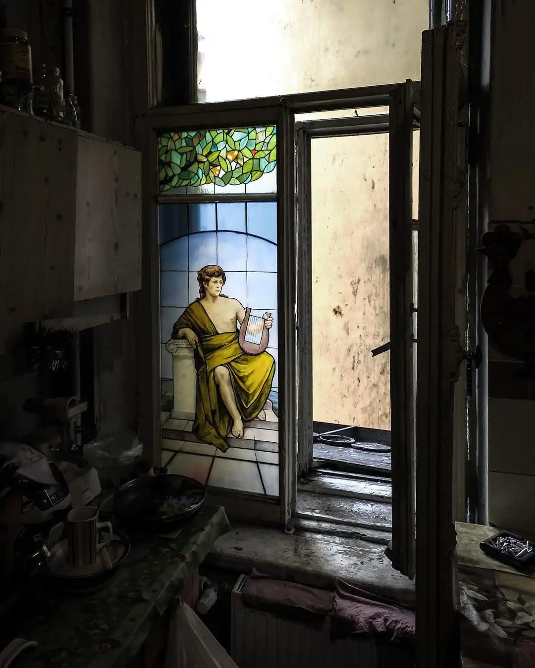 Витраж - не современная плёнка, это оригинальный дореволюционный витраж.