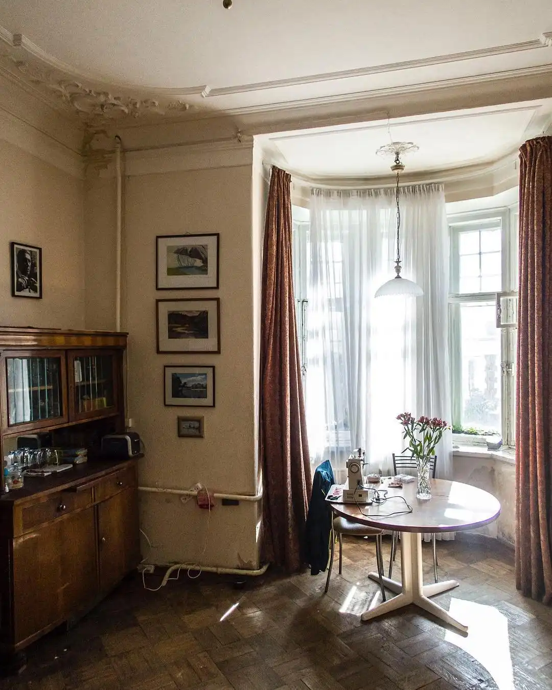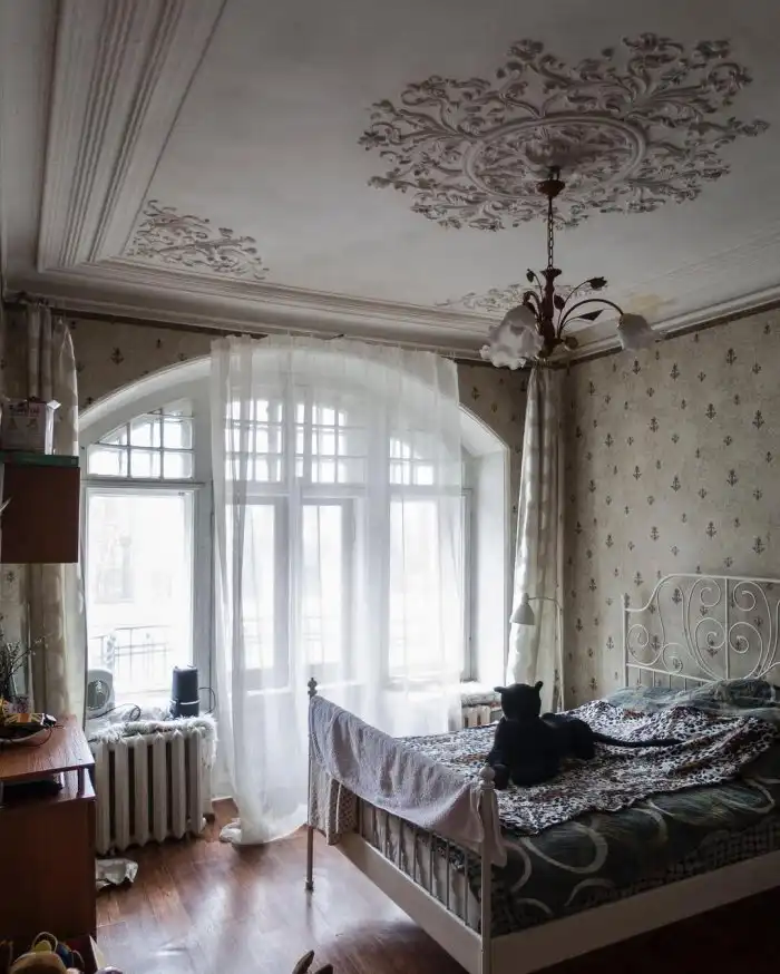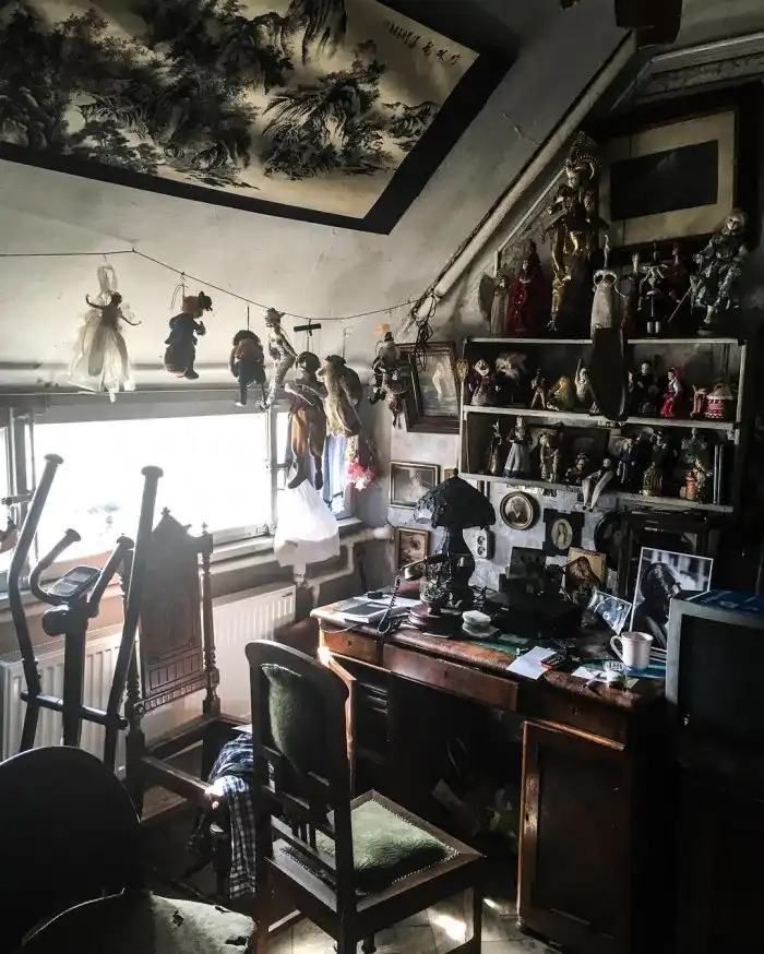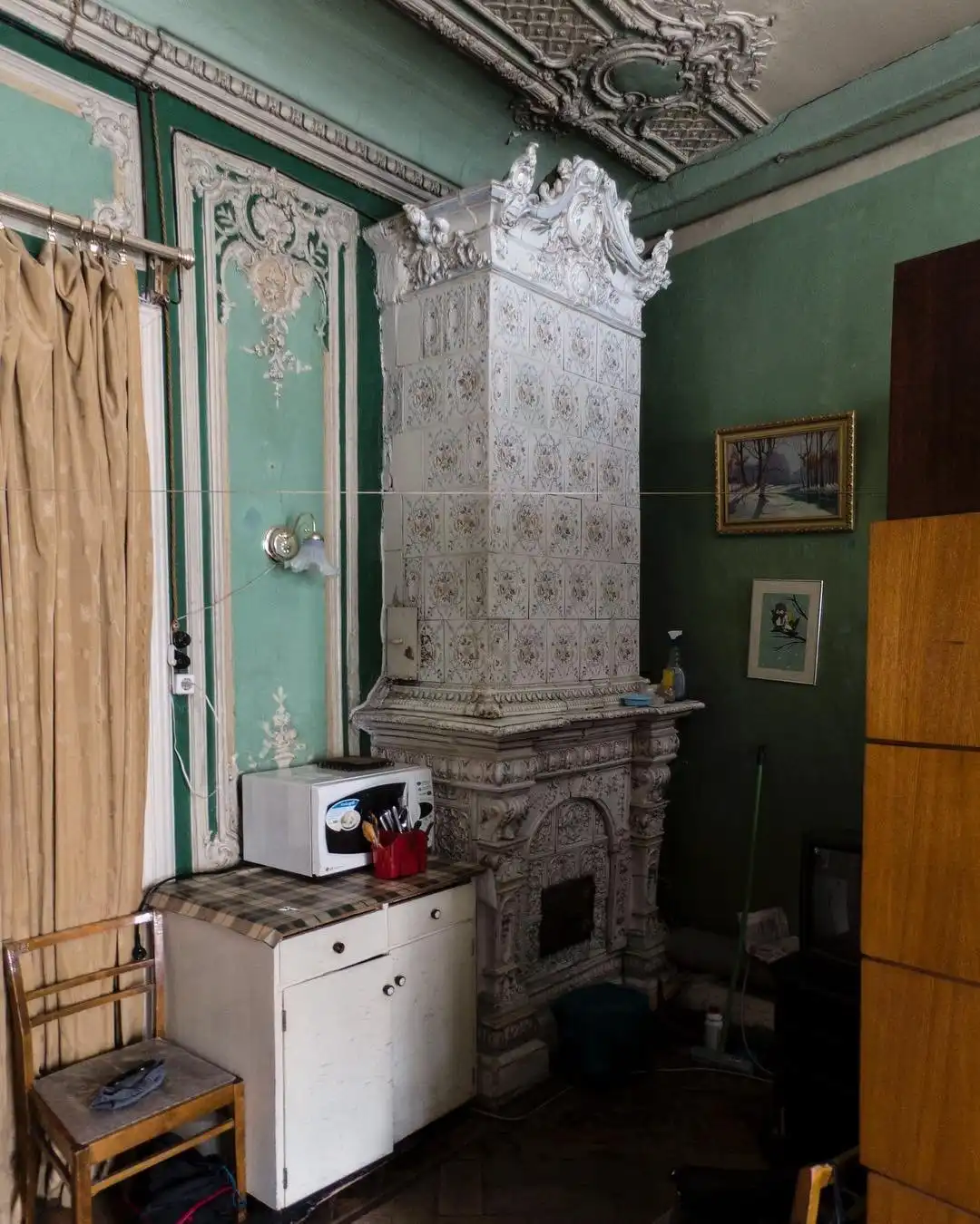 Незаконченная картина на стене — наследие работавшего здесь много лет назад художника, потомки которого сейчас владеют комнатой.