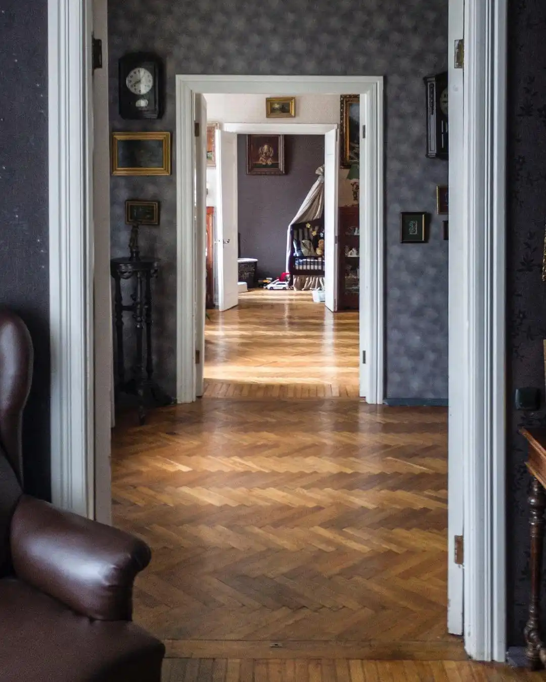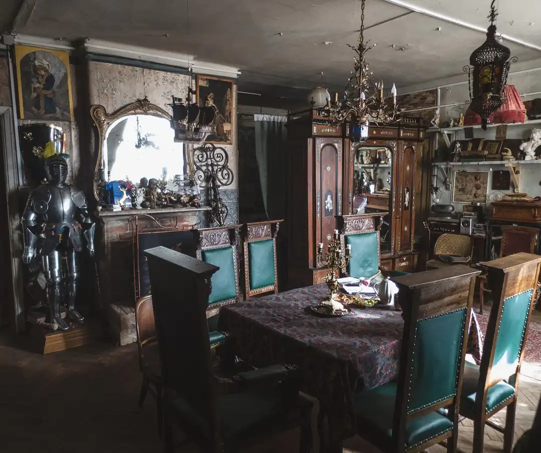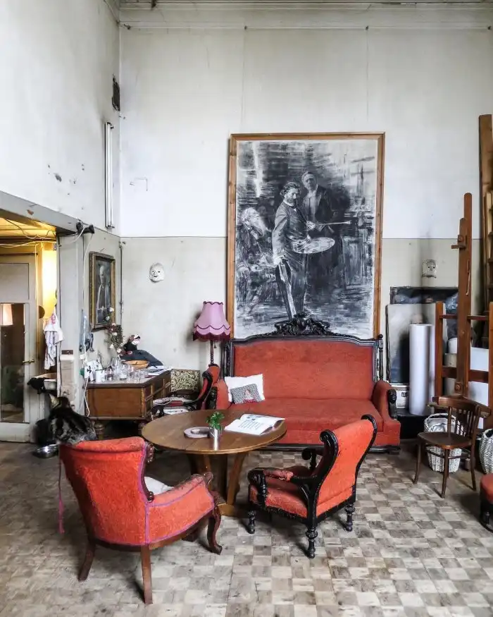 Незаконченная картина на стене — наследие работавшего здесь много лет назад художника, потомки которого сейчас владеют комнатой.