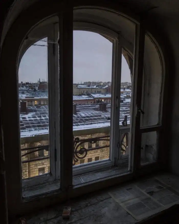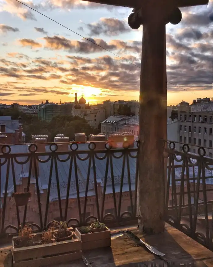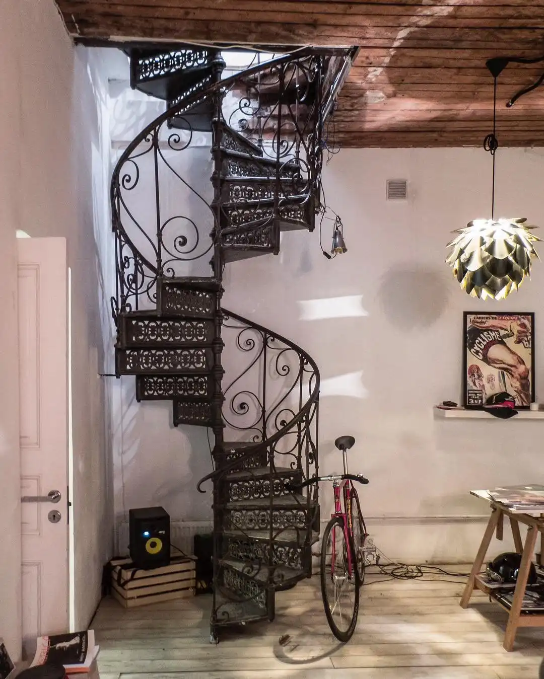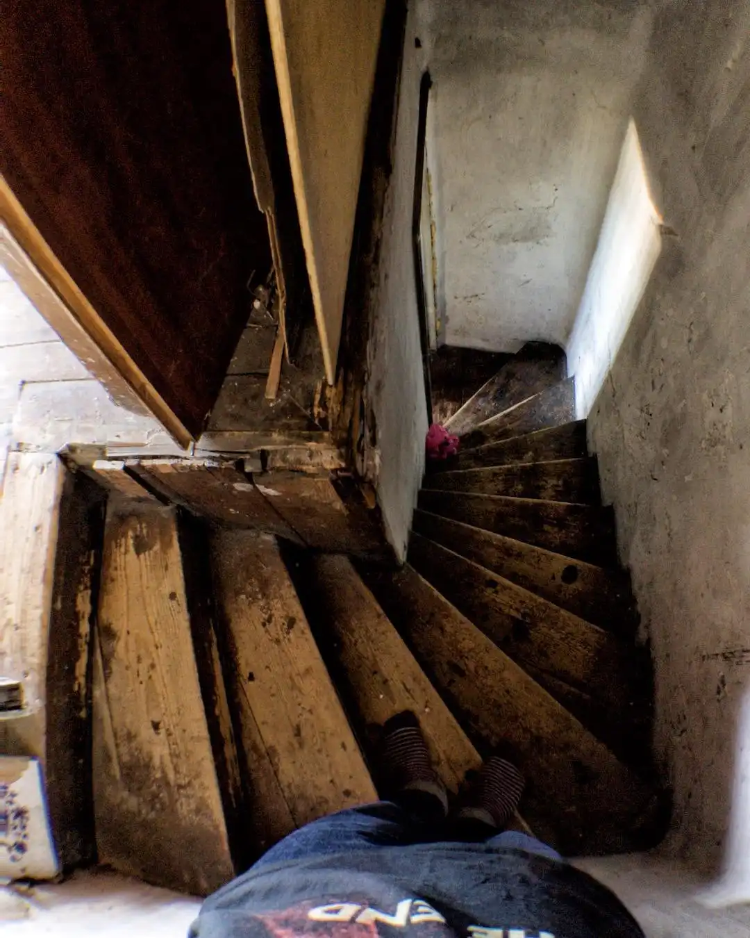 Так выглядит историческая лестница, ведущая из квартиры в жилую башенку в центре Петербурга