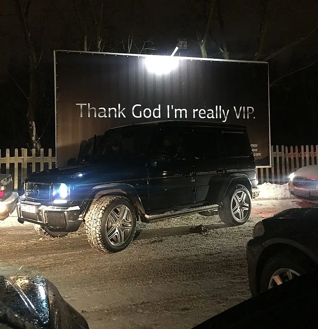 "Спасибо Богу за то, что я реально богат", - висит огромный плакат на въезде в это гламурное местечко. Чтобы не забывали. Километра два в сторону от Рублево-Успенского шоссе, сквозь елочки и вежливый пост ГИБДД, и ты в земном раю.