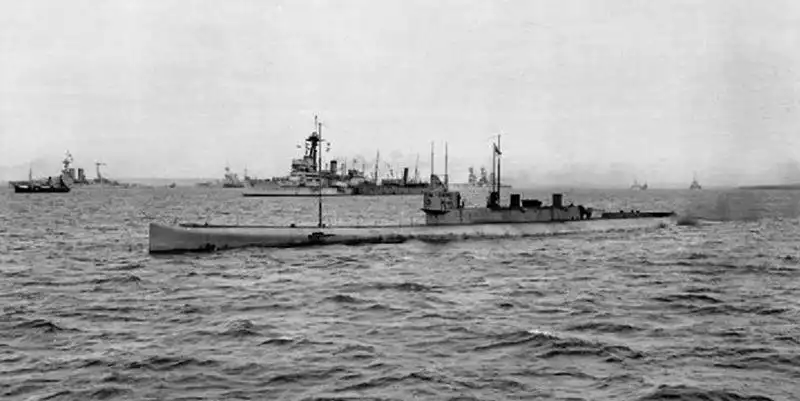 В ночь c 31 января на 1 февраля 1918 года состоялась сокрушительная во всех смыслах победа британского надводного флота над британским же подплавом. Дело в том, что англичане в надводных кораблях разбирались хорошо, а в подводных — не очень. А потому решили совместить приятное с полезным — построили серию подлодок с паровыми турбинами, ну и по размерам почти как лёгкий крейсер.