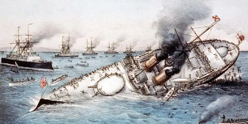 22 июня 1893 года во время манёвров британского Средиземноморского флота его командующий, вице-адмирал сэр Джордж Трайон, решил провести манёвр разворота двух кильватерных колонн. По всей, простите за каламбур, видимости, дедушка имел проблемы со зрением, но при этом его самомнение простиралось выше мачт. Когда командир второй колонны, контр-адмирал Альберт Маркхэм, попытался пискнуть что-то вроде: «Ой, блин, щас же ДТП устроим!», — сэр Джорж рявкнул: «Всё ништяк, рули как сказано!».