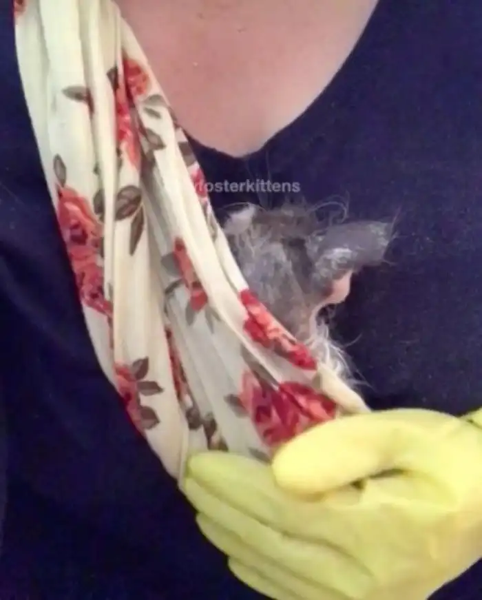 "Ее необходимо было изолировать от других моих приемных питомцев, поэтому она всегда находилась рядом со мной," - рассказывает Никки. "Я носила рубашки с большими карманами на груди и Банни сидела в них. Я всюду носила ее с собой, чтобы не оставлять одну. Когда занималась домашними делами, когда выгуливала собак, ходила в магазин... Котенок везде и всюду был со мной," - вспоминает Мартинез.