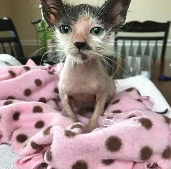 Когда малютка Банни прибыла котенком в один из приютов Лас Вегаса, у нее был такой запущенный случай стригущего лишая, что ее вряд ли когда-нибудь усыновили бы. Сотрудники решили передать животное в службу спасения, которая могла бы оказать ему необходимую помощь. Но те отказались взять котенка и его было решено усыпить. Как же вовремя для Банни появилась женщина с большим опытом работы с бездомными животными! Вот она-то и занялась ее здоровьем.