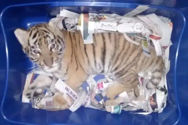 Маленький хищник был обезвожен, но в целом его здоровью ничего не угрожало. Сопроводительные документы оказались в порядке, однако данный случай признали жестоким обращением с животными. Тигренка доставили в центр содержания животных, а полиция и природоохранное ведомство начали расследование.