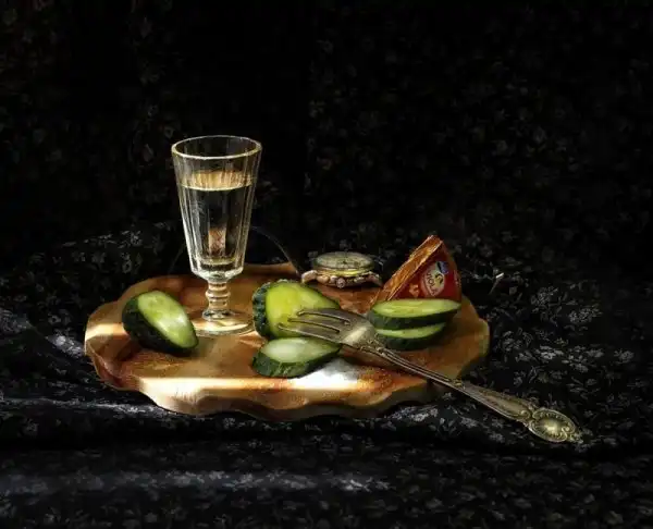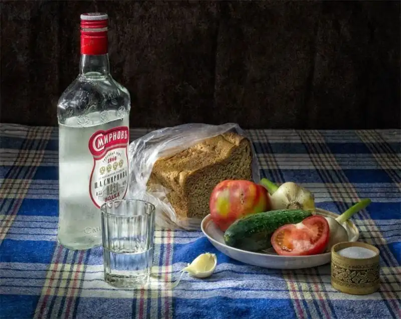 Отчего бы после честно отработанной трудовой недели и не побаловать себя?Николай Ляпин. Ностальгические натюрморты с водкой.