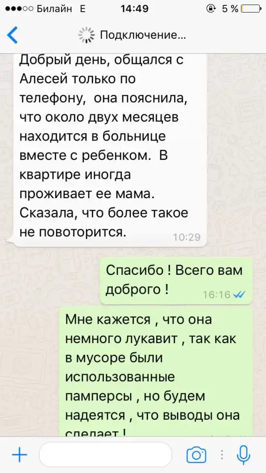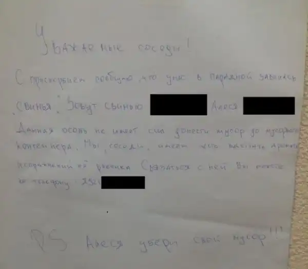 Порывшись в пакете с целью установления личности хозяина мусора, инициативный житель дома нашел среди использованных подгузников и пустых бутылок договор с именем и номером телефона.