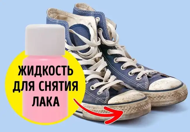 Удалить грязь с обуви можно с помощью ватного диска и ацетона или жидкости для снятия лака. Этот способ особенно подходит для чистки окантовки кед и кроссовок.
