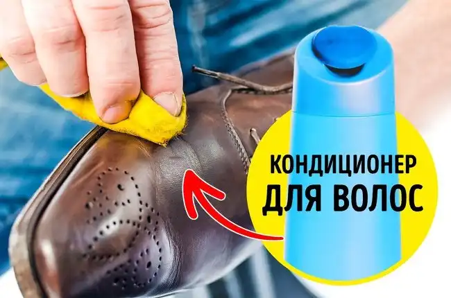 Небольшое количество кондиционера для волос не только поможет отполировать обувь, но и создаст на ней защитный слой.