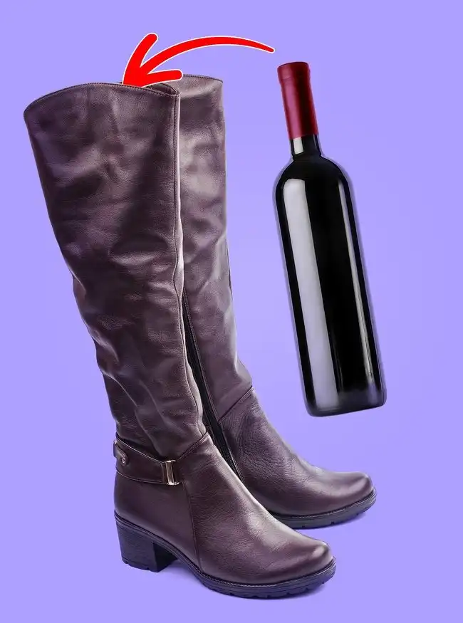 Благодаря своей устойчивости и тяжести бутылки от вина, помещенные внутрь высоких сапог, помогут сохранить их форму.