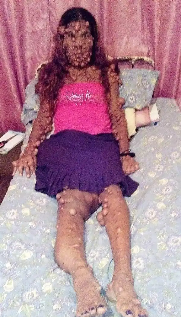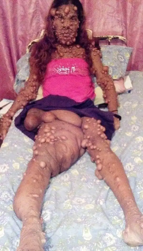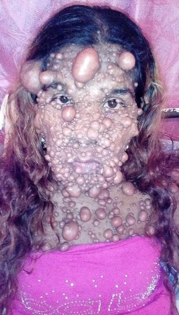 На женщину, покрывшуюся огромным количеством опухолей, страшно смотреть
