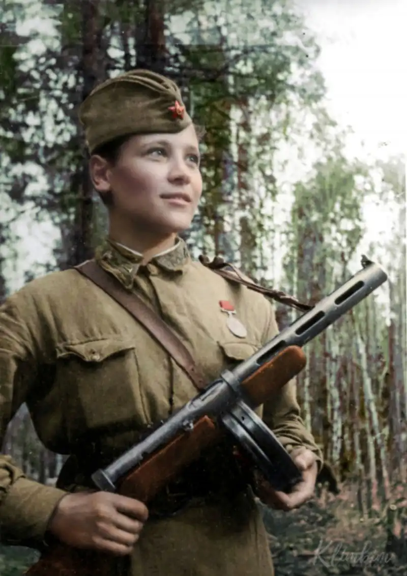 Санинструктор, разведчик 6-й отдельной гвардейской разведроты 3-й гвардейской стрелковой дивизии Карцева Любовь Иосифовна. 1922 г. р.