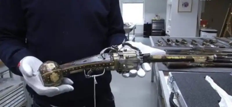 На сегодняшний день считается, что первое короткоствольное оружие, имеющее барабан и кремневый механизм воспламенения было изготовлено в 1597 году.