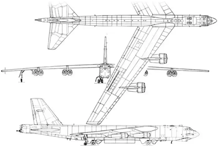 Рабочая высота полета B-52 была на треть, а крейсерская скорость примерно вдвое выше, чем у поршневого B-29. Это существенно повышало выживаемость самолета. С этой же целью он был снабжен ракетами – ложными целями ADM-20 «Qyelle» и вооружен УР «North American» AGM-28 «Hound Dog», предназначенными для огневого подавления ЗРК с последующим поражением стратегических целей ядерными бомбами. Для ухода на малые высоты полета потребовалось внести 120 изменений для упрочения конструкции. Однако и при этом самолет не может считаться маловысотным. Несмотря на высокую (более 500 кг/м2 при массе 190 т) удельную нагрузку на крыло, большое удлинение крыла и сравнительно малая жесткость конструкции приводят к тому, что машина сильно реагирует на порывы ветра.