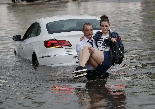 Иностранные корреспонденты оказались в нужное время в нужном месте — они успели сделать кадры, как мужчина оказывает помощь двум нижегородкам. Из-за вчерашних ливней на многих улицах Нижнего Новгорода образовались настоящие потопы, и автомобили легко утопали в них. Фотограф из международного агентства Reuters сделал фото, а многие зарубежные СМИ подхватили эти кадры и написали материалы. Британское издание Metro даже назвало нашего нижегородца «абсолютным героем».
