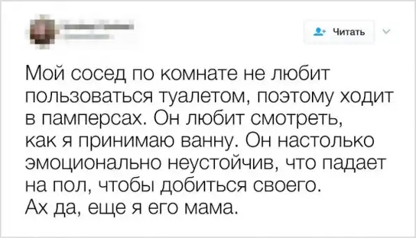 Пользователи твиттера рассказали самые смешные и странные истории о своих соседях по комнате