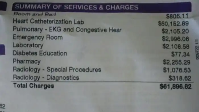 Ни для кого не секрет, что медицинское обслуживание в США очень дорогое, поэтому обойтись без медицинской страховки там будет весьма непросто. Почему? Предлагаем вам посмотреть далее на обычный счет из американской больницы, в которую пациент попал с подозрением на сердечный приступ. Когда видишь такие цифры за обслуживание в больнице, но у тебя нет медицинской страховки, хочется сказать: "И почему я просто не умер от сердечного приступа?".