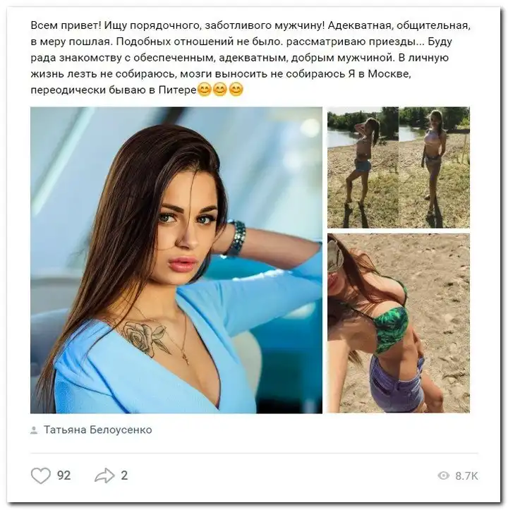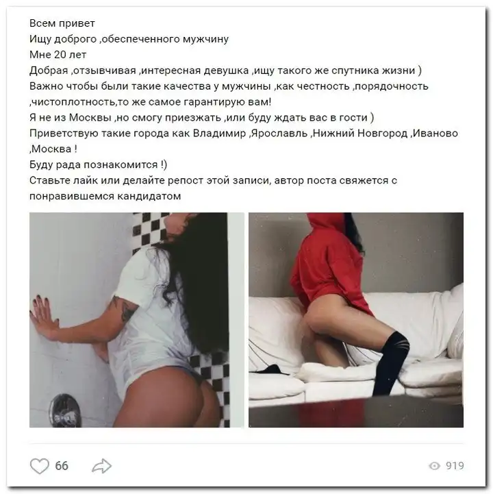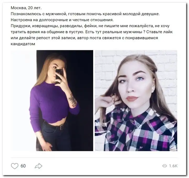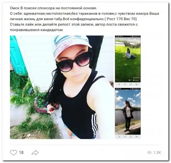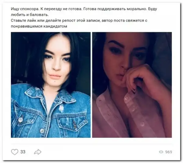 Эти наивные девушки хотят красиво жить и ничего не делать. Они надеются, что богатые спонсоры увидят их красоту, и в очередь выстроятся, предлагая свою помощь. Некоторые даже пишут, что никого интима, им должны заплатить чисто за приятное общение.