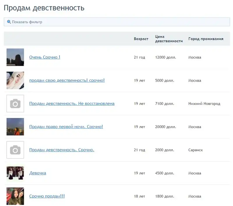 Соцсети сети просто кишат предложениями о купле/продаже девственности