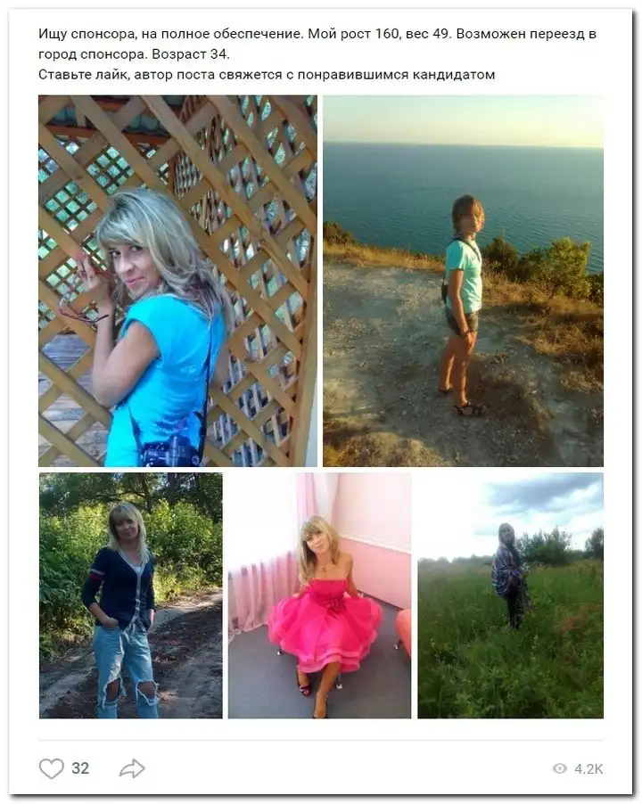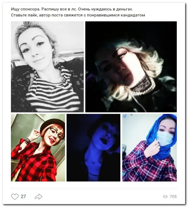 Эти наивные девушки хотят красиво жить и ничего не делать. Они надеются, что богатые спонсоры увидят их красоту, и в очередь выстроятся, предлагая свою помощь. Некоторые даже пишут, что никого интима, им должны заплатить только за приятное общение.