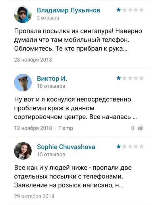 Автор этого поста пишет, что с его приятелем произошел весьма неприятный случай. Он заказал с китайского сайта камеру заднего вида для автомобиля, и трек отслеживался до распределительного центра в городе Барнаул, где и пропала посылка. Мужчина обратился в центр, где ему посоветовали обратиться в центральный офис, который находится в Москве.