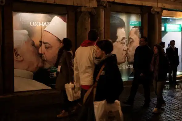 Рекламная кампания производителя одежды Benetton с целующимися политиками разных стран была, по утверждению представителей компании, направлена на борьбу с ненавистью во всех ее проявлениях. Тем не менее в ноябре 2011 года компании пришлось отказаться от одного из плакатов, на которым были изображены целующимися папа римский Бенедикт XVI и имам мечети Аль-Ажар в Каире Ахмед эль-Тайиб, из-за угроз Ватикана подать на Benetton в суд, так как реклама оскорбляла не только чувства верующих, но и "образ Его Святейшества"