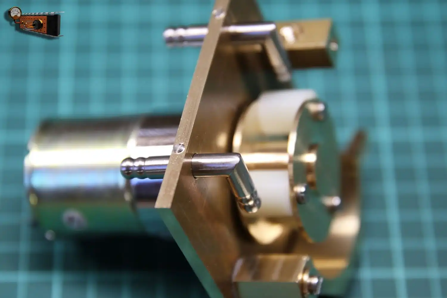 Трубки подключаются под прямым углом к плоскости насоса. Для этого делаю Г-образные трубки из нержавеющей стали. Для пайки под прямым углом в шамотном кирпиче профрезеровал два углубления.