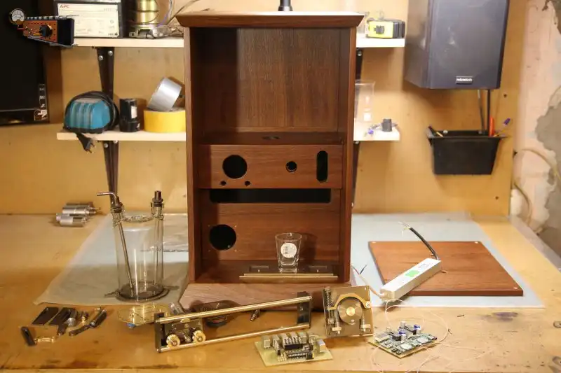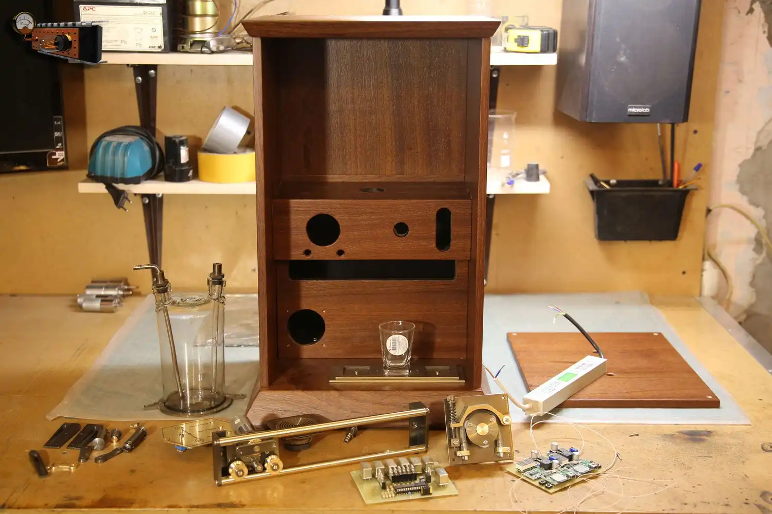 Было задание сделать наливайку компактного размера, такую, какую можно поставить на стол. Устройство получилось размером 290Х300Х520 миллиметров. Вес около шести килограммов.