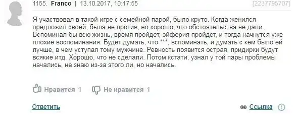 А вот и противоположная ситуация, когда эксперименты только сблизили пару