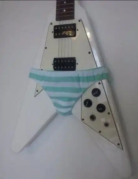 Сразу видно, что гитарой пользуются не по назначению: одной струны не хватает.