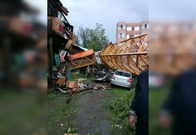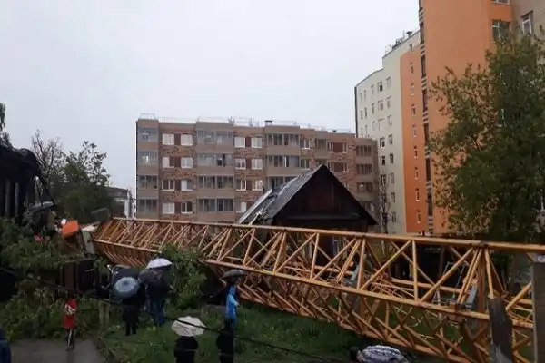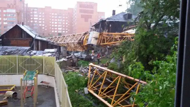В понедельник вечером на улице Решетникова в Перми на территорию жилых деревянных домов упал строительный кран. По словам местных жителей, во время падения он задел линии электропередач, поэтому многие дома в округе оказали обесточены. Внутри кабины крана на момент падения находилась крановщица, которой помогли выбраться спасатели. Медики сразу же оказали ей первую помощь - у женщины обнаружили перелом голени. Поврежденными оказались три дома, в одном из которых проживают 7 человек, а в другом - 5.