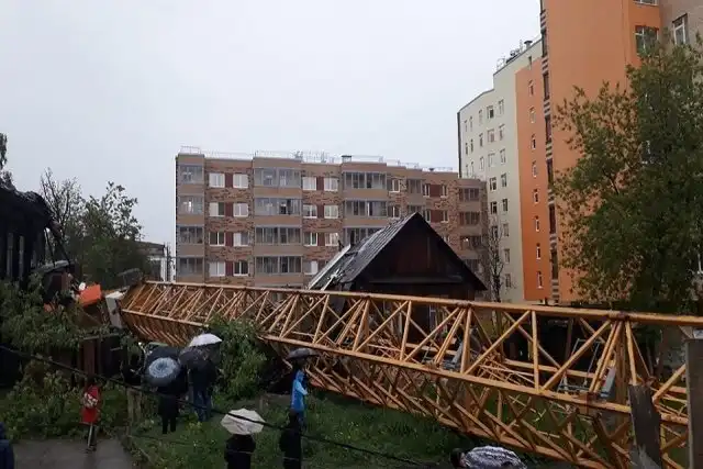 В Перми обрушился башенный кран. Очевидцы сняли падение на камеру