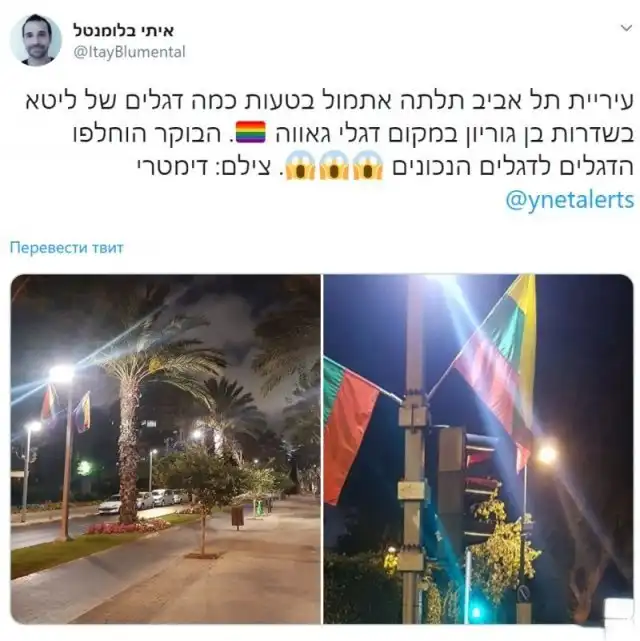 Во время подготовки к ЛГБТ-параду в Тель-Авиве развесили не те флаги