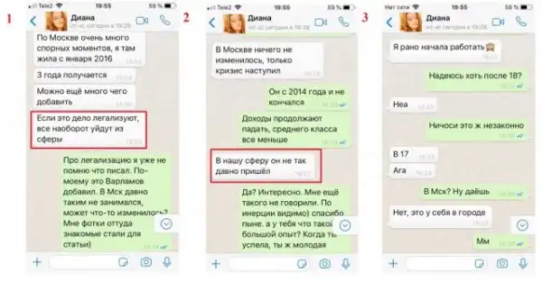 • Иванка, 20 лет, третий салон. 6000 рублей в час. По её словам, в Дубае за сутки платят 1500 евро за сутки (~ 105 000 рублей). Ищут эти темы через объявления в интернете – народ не заморачивается и просто гуглит или смотрит группы ВК, есть ещё специализированные форумы. Как минимум 2 очень влиятельных.