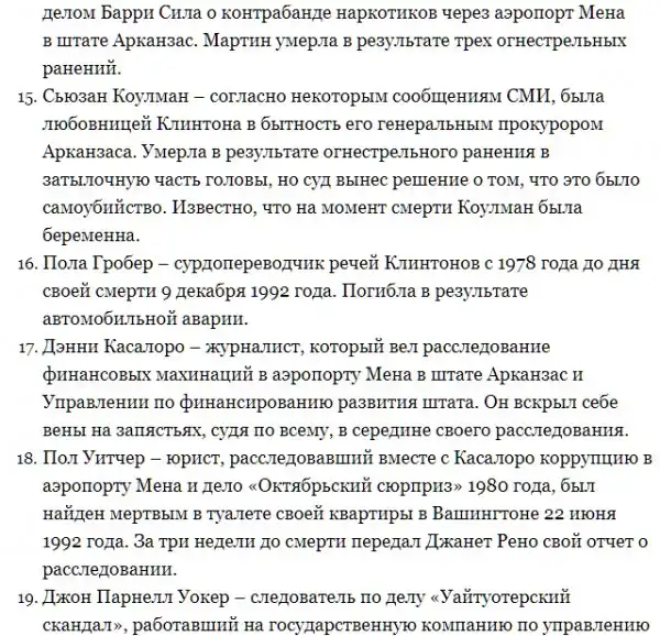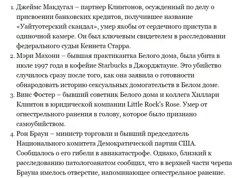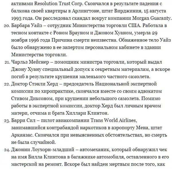 Полный список людей, связанных с Клинтонами, которые "покончили" с собой