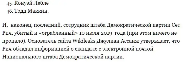 В этих документах содержалось описание случая, когда Билл Клинтон провел частную вечеринку на «педофильском» острове Джеффри Эпштейна в тропиках. Клинтон не менее 27 раз летал на частном самолете Эпштейна «Лолита-Экспресс», и большая часть этих полетов проходила в сопровождении несовершеннолетних девочек.