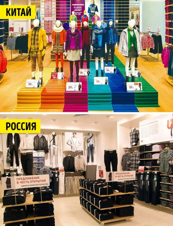 В Uniqlo есть команда специалистов, которые анализируют покупки людей в разных странах и выстраивают географическую стратегию маркетинга. Например, в Азии, откуда родом бренд, люди предпочитают яркую одежду. А в странах Европы покупатели одеваются куда сдержаннее. Цветовая палитра одежды в магазинах бренда зависит от вкусовых предпочтений покупателей.