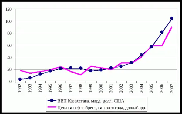 Можно сказать: "Да, нефть росла, но не факт, что при другом политике так бы росла экономика." Хорошо, давайте посмотрим на рост ВВП в этот же период, например, в Казахстане. Страна похожая, тем, что является частью бывшего СССР и также держится на продаже нефти.