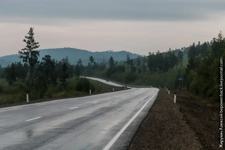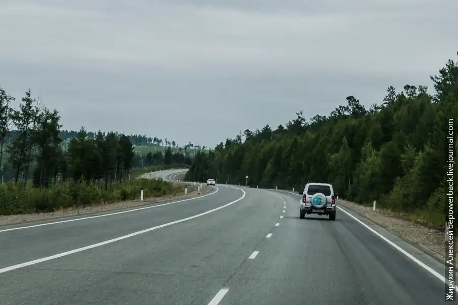После Байкала узкое двухполосное шоссе уже не кажется чем-то страшным. Прост едешь и наслаждаешься хорошей дорогой.