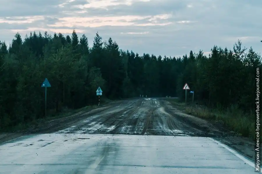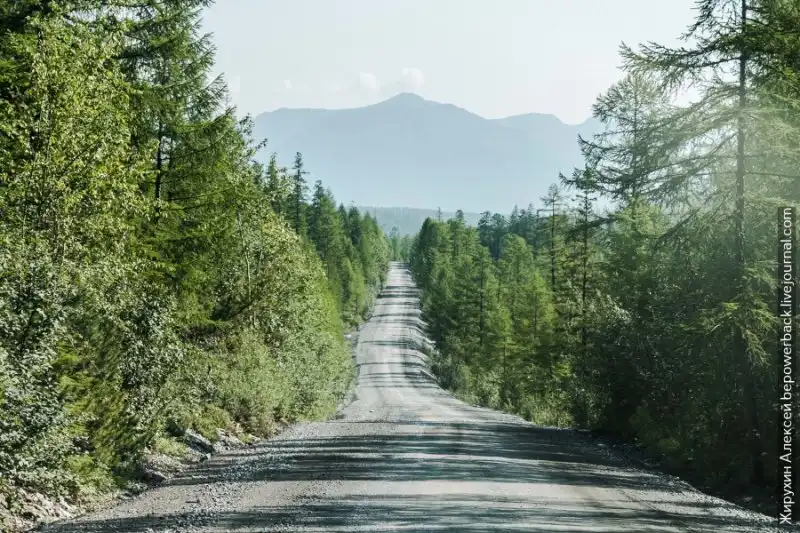 Это легендарная дорога, построенная во время ГУЛАГа узниками концлагерей. Умирающих на тяжелых работах хоронили прям под ней, отсюда и второе название "Дорога костей". Говорят, что это единственная федеральная трасса полностью без асфальтового покрытия, но это не так. Асфальта на всем протяжении найдется в общей сложности не более 100 км.