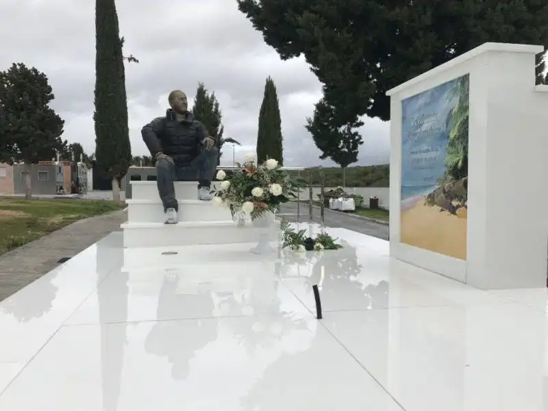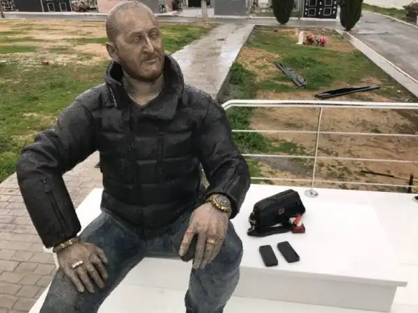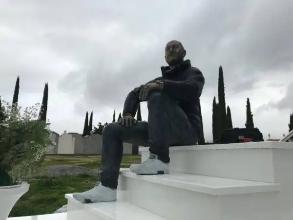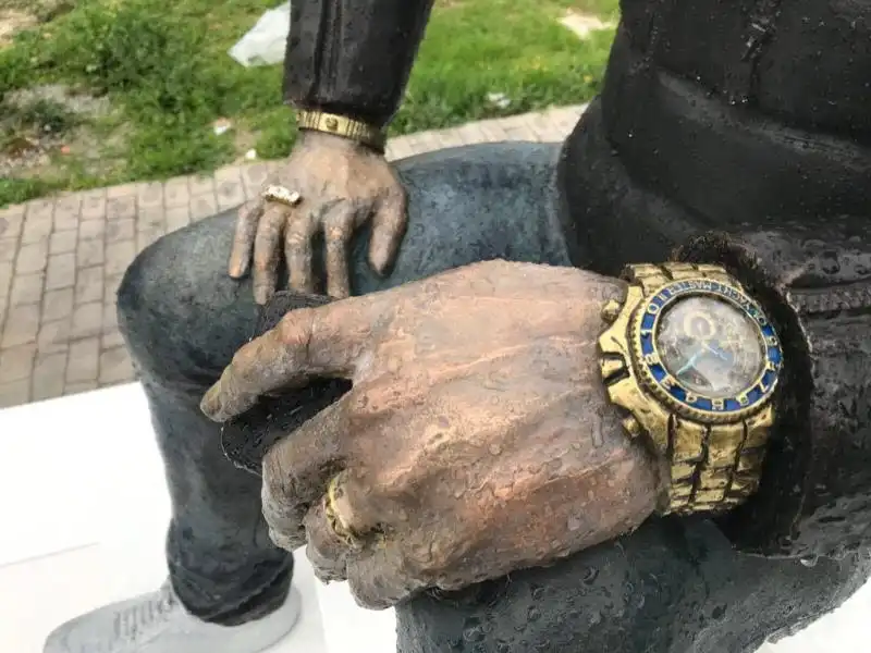 Он представляет собой статую самого Антонио в дорогом шмоте и побрякушках рядом с его ласточкой – репликой Audi Q5.