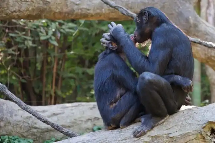 Шимпанзе бонобо - удивительные приматы во всех смыслах. В социальной жизни этих приматов секс играет огромную роль. Например половой акт у бонобо является не только средством продолжения рода, но и улаживанием конфликтов. Только этот вид приматов смотрит друг другу в глаза во время соития, а их любовные утехи очень похожи на человеческие.