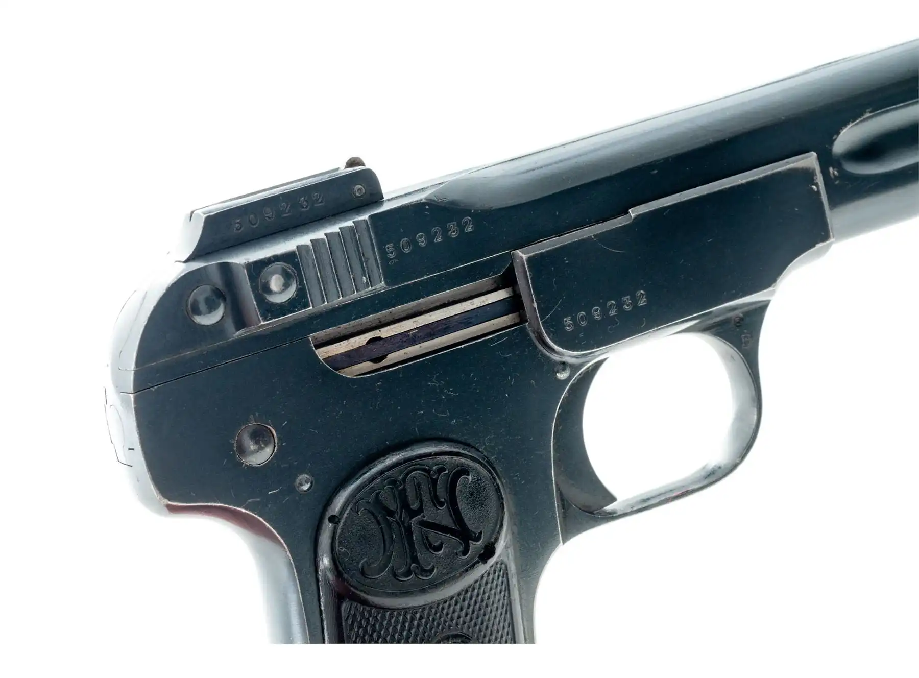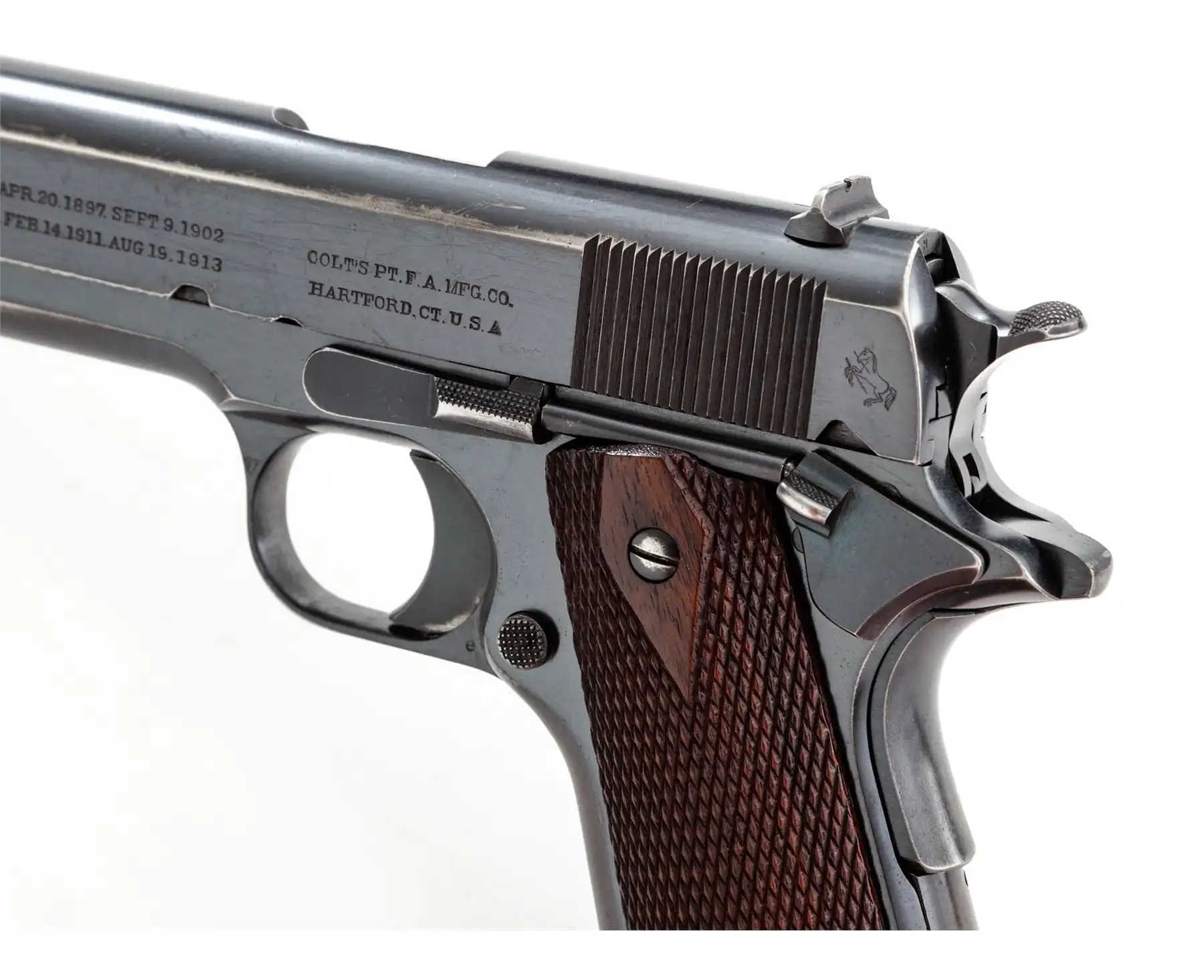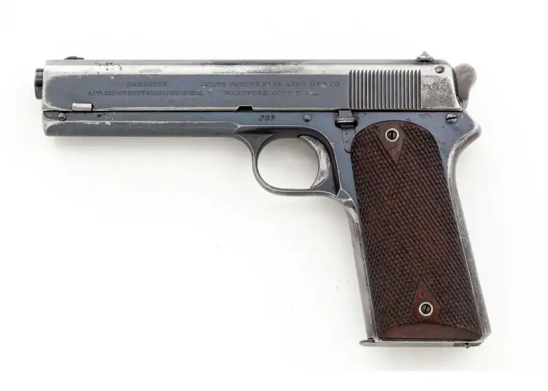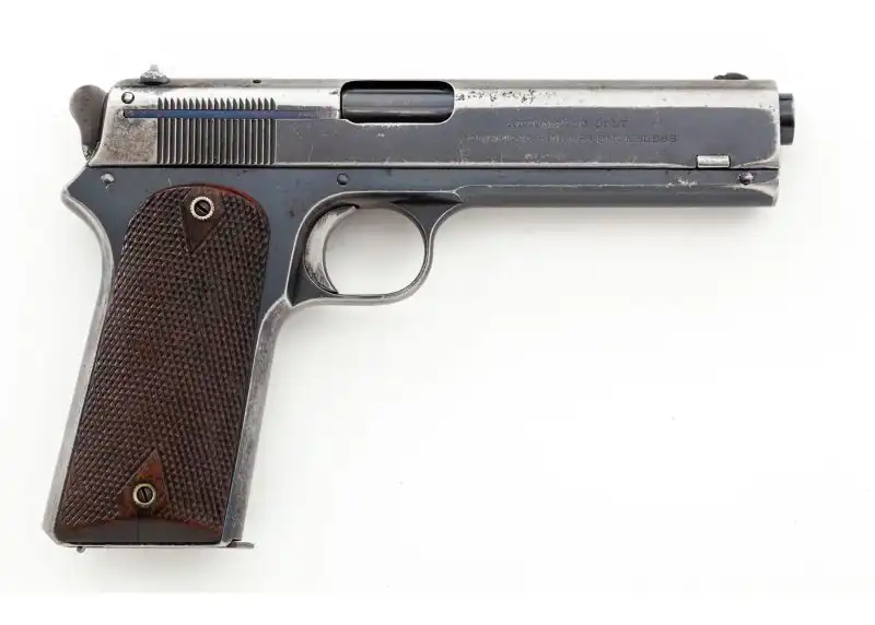 Один из первых шагов на пути к знаменитому 1911. Ствол ещё крепится к рамке двумя серьгами, а не одной, и опускается при расцеплении параллельно ей, но в целом принцип уже классический, короткий ход ствола. Калибр - .38ACP ( 9x23 ), длина ствола - 152мм ( 6" ).