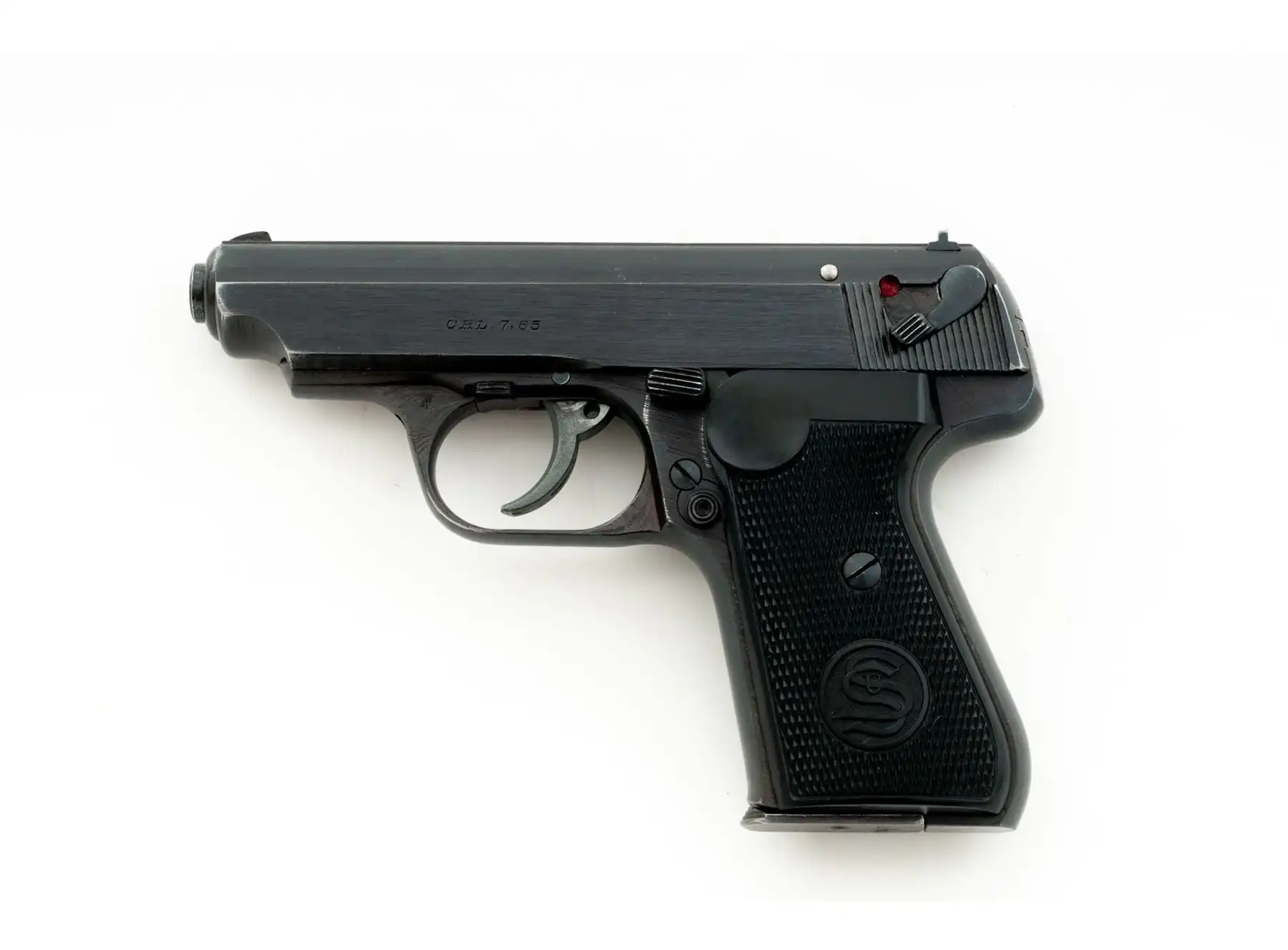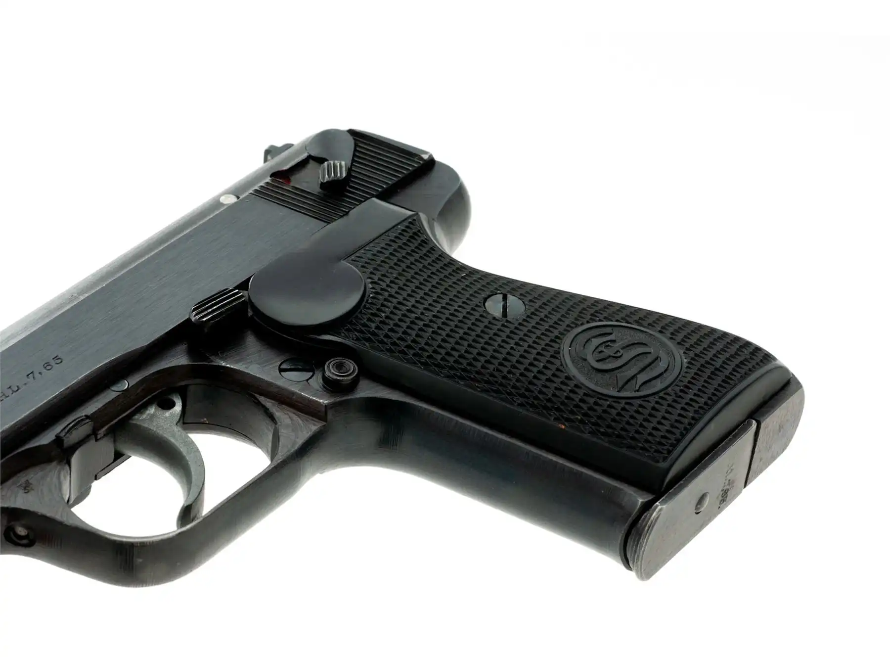 Карманный немец времён всё той же ВМВ, конкурент Вальтера ППК и Маузера HSc. Из интересного - УСМ двойного действия со скрытым курком и рычаг для безопасного спуска курка и его же взвода на левой стороне рамки.